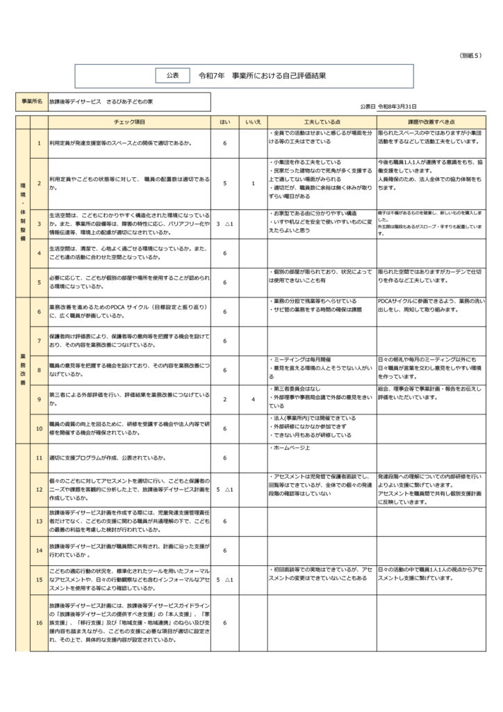 放課後等デイサービス 自己評価