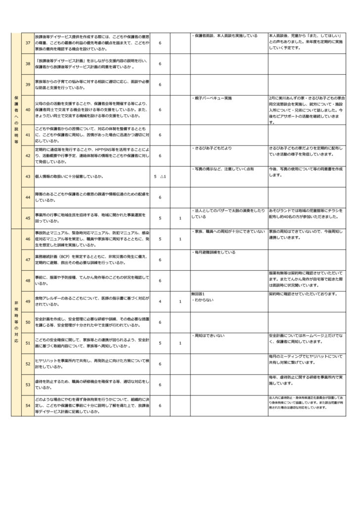 放課後等デイサービス 保護者アンケート