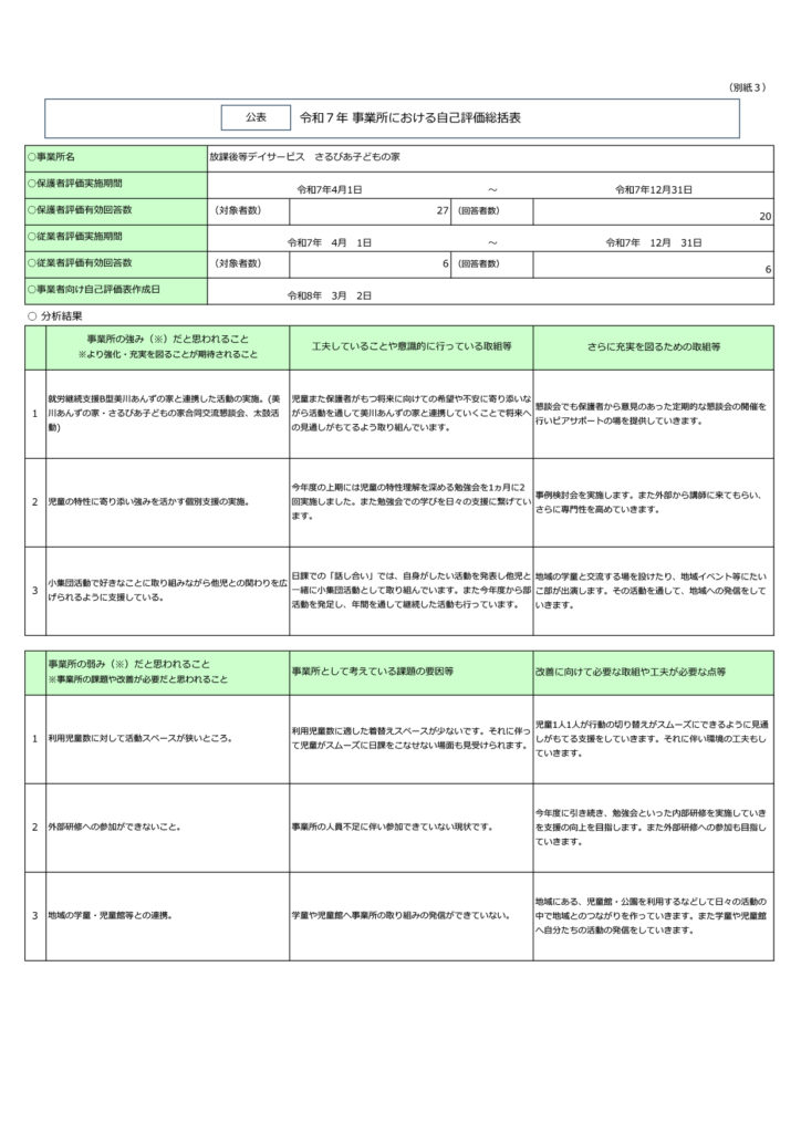 さるびあ子どもの家 令和7年度 アンケート結果